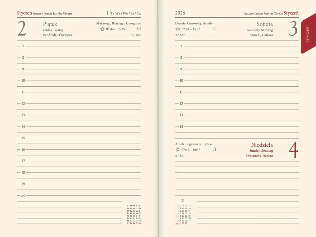 Kalendarz książkowy A4 - Rozkład Dzienny